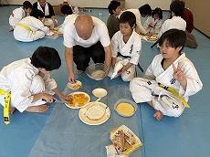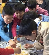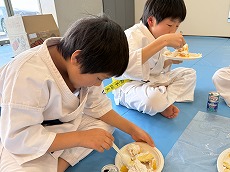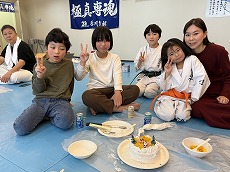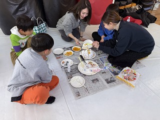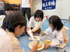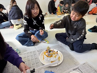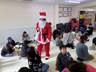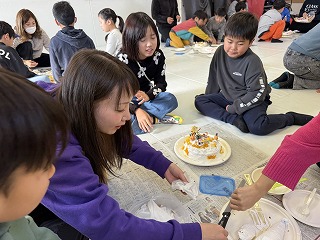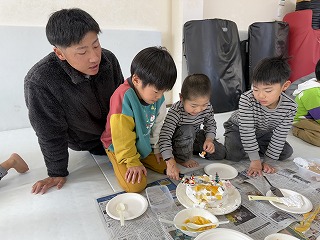 クリスマス会 12月 2024/12/21 ツイート クリスマス会 12月21日(土) 恒例のクリスマス会、ケーキ作りから始めました。友達と協力しながら作るケーキは独創的でいろんなケーキが出来上がりました。また、自分で作ったケーキはとてもおいしくきれいに食べきりました。ケーキを食べたあとは、ビンゴゲームでクリスマスプレゼント。誰もが一番最初にビンゴになってほしいものをゲットしたいがナカナカたいへん。プレゼントを手にしてさっそく遊びへ。なかなかじょうずです。